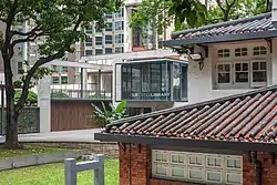 After World War II, the buildings were used as a garage, government staff quarters and for storage by the Government Supplies Department.[1] Until 1998, they were part of the larger Government Supplies Department compound that included the department's headquarters. From 1998 to early 2000, the buildings of the compound were leased out on a short-term basis. They attracted a number of creative teams to develop arts in the area and housed the Oil Street Artist Village (油街藝術村). The government finally evicted the tenants, citing their lack of permits or insurance. A number of artists relocated to the Cattle Depot Artist Village in 2001,[2][3][4] and some relocated to Foo Tak Building (富德樓) in 2003. The buildings were used as a storehouse of the Antiquities and Monuments Office until late 2007, [1] and thereafter the site was developed into a combination of private residential buildings, a hotel and public space Oi!.