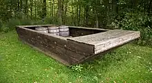 A historic recreation of a wooden oil derrick at Oil Creek State Park