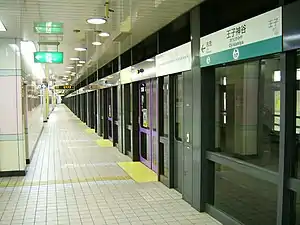 The station facilities were inherited by Tokyo Metro after the privatization of the Teito Rapid Transit Authority (TRTA) in 2004.[1]