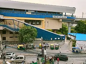 Okhla Vihar elevated metro station situated on the Magenta Line of Delhi Metro.