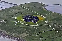 Oland (Danish: Øland, North Frisian: Ualöönist) is a small hallig which is connected by a narrow-gauge railway to the mainland and to hallig Langeneß. In 2019, the population was estimated, unofficially, to be 16 people.[1]