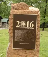 Bolton Smith, an investment banker from Memphis, Tennessee and the first president of the Chickasaw Council, purchased and donated the original 206.28-acre (0.8348 km2) Kia Kima site on April 11, 1916.[2] The property consisted of a bluff overlooking the South Fork Spring River in Sharp County, Arkansas, near Hardy. The original Kamp Kia Kima opened in 1916 and operated (excluding World War II years)[3] as a Boy Scout summer camp until 1963.[4] For the next 33 years the property was in a state of abandonment and ruin until 1996 when the Old Kia Kima Preservation Association was formed with the mission to restore the camp.