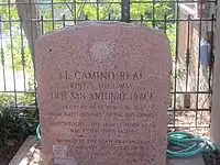 As of February 2006, all but nine of the 123 markers were surviving, but many were moved from their original locations as the route of the road was straightened by new highway construction.[2] In deep South Texas, many of the markers are now on private ranches. (See List of Old San Antonio Road DAR Markers.)