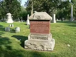 In the summer of 1859, Petersen returned to the United States with his wife and four children and worked again at the Bethel Ship Mission in New York. In 1869, he returned to Norway and was the superintendent of the Methodist Church mission. In 1871, Petersen returned to America and worked there for the rest of his life. He died in 1901 after founding a church in Brooklyn, New York. He was buried beside his wife, who died in 1883, and his son at Forest Home Cemetery in Milwaukee, Wisconsin.[8]