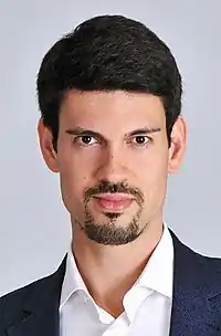 Oleksii Serhiiovych Zhmerenetskyi (Ukrainian: Олексій Сергійович Жмеренецький IPA: olekˈsʲij ʒmereˈnetsʲkɪj; born 28 October 1986) is a Ukrainian politician currently serving as a People's Deputy of Ukraine of the 9th convocation.[1] He was elected to the Verkhovna Rada (Ukraine's parliament) from Ukraine's 190th electoral district, as the candidate of Servant of the People.[2]