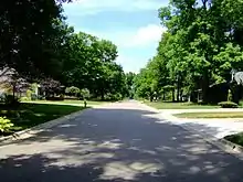 The area that makes up Olentangy West was originally designated as part of the United States Military Lands. This area was set aside as payment for soldiers who served in the American Revolutionary War. Shortly after Franklin County was established, the area became part of Clinton and Perry Townships. Simon and Alexander Shattuck were major landholders in the area, having moved to Ohio from Groton, Massachusetts.[2] They farmed the land and established a settlement called "Shattucksburg" near the current site of the Marburn subdivision. A small schoolhouse was built nearby in 1856, which was later converted to a private residence. Union Cemetery was established in 1847, having previously been used as a burial site for the Hess family, and is now one of the largest cemeteries in Columbus.