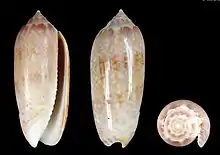 | Shell of Oliva nivosa (specimen at MNHN, Paris) | |