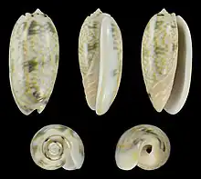 - ↑ Oliva tricolor Lamarck, 1811. Retrieved through: World Register of Marine Species on 17 November 2012.