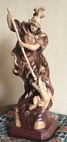 Olive wood is used because it is easier to carve than other woods and could be done accurately with simple hand tools. Also, it has a diverse variety of natural color and tonal depth, due to the annual structure. It is also resistant to decay and receptive to a number of surfacing treatments.[3] The olive tree's wood is widely used in the manufacturing of various artistic, religious, and historical works such as cups, crosses, engraved key chains, Christian magnets, kitchen items, rosary beads, rosary boxes, tree ornaments, flower vases, and wall decorations.[5]