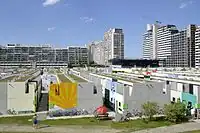 The Olympic Village (German: "Olympisches Dorf") was constructed for the 1972 Summer Olympics in Munich, Germany and was used to house the athletes during the games. The Munich massacre took place in one of its apartment blocks, Connollystraße 31; the street was named for an Irish-American participant in the 1896 Olympics.[1] The Olympic Village is in the north part of the Olympiapark.