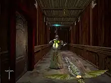 Rice enjoyed the creativity of some opponent designs but faulted them for their lackluster artificial intelligence, with some being "downright annoying".[3] He further criticized the repetitive level design, tedious jumping puzzles, "dry" dialog with amateurish voice acting, and "unsettling" swimming animation.[2][3] He found the camera bobbing effect particularly nauseating and slated the lack of an option to disable it.[2][3] Rice cited the "halfway decent" music as one of the few upsides.[3] Asher believed that the game was aimed at a player base that was unlikely to play FPS games while being uninteresting for regular FPS players.[1] Rice said it was a poor attempt at combining the message of good and evil with video games.[3]