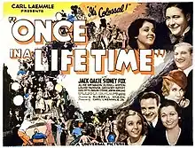 Once in a Lifetime is a 1932 American pre-Code comedy film based on Once in a Lifetime by George S. Kaufman and Moss Hart.[1] The film was produced and distributed by Universal Pictures, directed by Russell Mack and stars Jack Oakie, Sidney Fox and Aline MacMahon.[2]