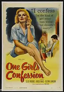 One Girl's Confession is a 1953 low-budget film noir released by Columbia Pictures. The movie stars Cleo Moore and was written, produced, and directed by Hugo Haas who also plays a supporting part in the film.[1]