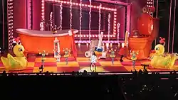 Upon its release, the singer has been heavily criticized for her song, "Ur So Gay", considered by the site The New Gay to be homophobic.[34] The author of the publication added, "It's time to Katy Perry to stop talking nonsense" because "the song trots out a number of tired gay stereotypes to condemn one of Perry's ex-boyfriends and includes a paradoxical chorus".[35] Jane Czyzselska from The Guardian commented that "Perry's song is a rather sweet, refreshing antidote to the avalanche of overtly sexualized boy-grinds-girl songs."[36] She promoted the song in Portugal, and it was not very well received by the public. Her first single, "I Kissed a Girl", became a worldwide controversy. Despite the context, Perry mentioned several times that she does not define herself as heterosexual.[37][38][39] She has been strongly criticized by the LGBT community, who believe that the singer used music to make money and not on behalf of homosexuals, and by critics who claimed that music leads the girls to be lesbian.[40] The song was criticized by the local headquarters of the evangelical Havens Corners Church, which has set the following sentence in its garden in September 2008: "I kissed a girl and liked it. So I went to hell."[41][42] To promote the album Perry embarked on three tours: the Warped Tour 2008, her first solo world tour, the Hello Katy Tour, with 89 shows performed, and No Doubt's Summer Tour 2009 as its opening act.