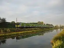 Ongar is served by Hansfield railway station, which opened in June 2013 and is a 10/15 minute walk from Ongar. The station is on the Dublin Docklands to Dunboyne railway station / M3 Parkway railway station commuter route, its position on the Dunboyne commuter line sees it served by 45 trains daily, with a peak journey time of 25 minutes to Docklands or Connolly Station, itself a spur off the Dublin to Maynooth commuter route to the west of Clonsilla Station. Connection to the Luas Green Line, and ultimately the whole Luas system, is possible via the Luas Broombridge stop.[11]