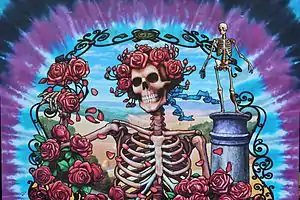 The iconography of the Grateful Dead, including tie-dye, skeletons, and flowers, that often feature in the work of Online Ceramics.
