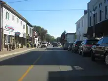 Now several kilometres inland from Lake Erie, the former route of Highway 18 travels through farmland, making a brief jog south before returning to a straight eastward route into the municipality of Essex and the community of Harrow.[9] Within Harrow, the former route is named King Street, and was maintained under a Connecting Link agreement between Roseborough Road and Herdman Street.[4] Continuing east, it passes Cedar Creek Conservation Area and crosses Cedar Creek at Essex County Road 23 (Arner Townline), which serves as the boundary between Essex and Kingsville.[7] Entering the urban boundary of Kingsville, it meets the eastern terminus of Essex County Road 50 (Heritage Road). Highway 18 was maintained under a Connecting Link agreement in Kingsville between Fox Lane and the Chrysler Canada Greenway, a rail trail along a former branch of the Chesapeake and Ohio Railway.[4]