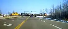 Highway 406 was the last 400-series highway that featured at-grade intersections and two lane sections.[20] The original intention was to twin this two-lane section shortly after it was constructed in the 1970s. Plans were deferred multiple times, until the project resumed in the early 2000s.[21] The first phase of this twinning opened to traffic in 2007, extending the four-lane highway 5.6 km (3.5 mi) from its previous convergence south of Beaverdams Road to a point north of Port Robinson Road.[22]