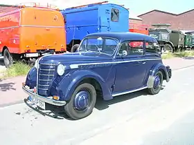 At 2500 Reichsmark it offered a true four-seater with 1.3-litre, four-cylinder, side-valve, 24 PS (18 kW) engine capable of 100 km/h (62 mph). Drive was to the rear wheels through a three-speed gearbox but a four-speed unit became available in 1937. The car had independent front suspension with a live axle at the rear and semi-elliptic leaf springs. This car was also assembled in Tanjung Priok, near Jakarta, in the then-Netherlands East Indies. Assembly there began in 1938 and the car was marketed as the "Opel 1.3".[5]