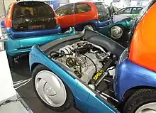The Opel Twin was a prototype vehicle built by Opel in 1991. If was an electric car with an exchangeable drive unit including the rear wheels. For an electric drive, the batteries and motors could be replaced by an internal combustion engine including fuel tank, gearbox and an exhaust system.