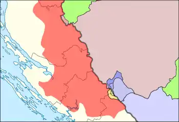 Following the 1990 electoral defeat of the government of the Socialist Republic of Croatia, ethnic tensions grew. The Yugoslav People's Army (Jugoslovenska Narodna Armija – JNA) confiscated Croatia's Territorial Defence (Teritorijalna obrana) weapons to minimize resistance.[1] On 17 August, the tensions escalated into an open revolt by Croatian Serbs,[2] centred on the predominantly Serb-populated areas of the Dalmatian hinterland around Knin,[3] parts of the Lika, Kordun, Banovina and eastern Croatia.[4] This was followed by two unsuccessful attempts by Serbia, supported by Montenegro and Serbia's provinces of Vojvodina and Kosovo to obtain the Yugoslav Presidency's approval of a JNA operation to disarm Croatian security forces in January 1991.[5] After a bloodless skirmish between Serb insurgents and Croatian special police in March,[6] the JNA, supported by Serbia and its allies, asked the federal Presidency declare a state of emergency and grant the JNA wartime powers. The request was denied on 15 March, and the JNA came under the control of Serbian President Slobodan Milošević. Milošević, preferring a campaign to expand Serbia rather than preservation of Yugoslavia, publicly threatened to replace the JNA with a Serbian army and declared that he no longer recognized the authority of the federal Presidency.[7] By the end of March, the conflict had escalated into the Croatian War of Independence.[8] The JNA stepped in, increasingly supporting the Croatian Serb insurgents and preventing Croatian police from intervening.[7] In early April, the leaders of the Croatian Serb revolt declared their intention to integrate the area under their control with Serbia. The Government of Croatia viewed this declaration as an attempt to secede.[9]