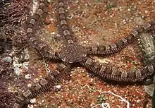 The central disk is up to 2.5 centimetres wide, with arms to 15 centimetres long. The species is a filter-feeder that sifts sand and mud from the ocean floor for detritus and plankton.