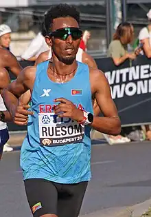 Oqbe Kibrom Ruesom (born 1 January 1998) is an Eritrean long-distance runner.[1] He qualified to represent Eritrea at the 2020 Summer Olympics in Tokyo 2021, competing in men's marathon.[2]