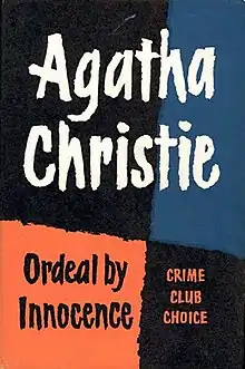 Ordeal by Innocence is a work of detective fiction by British writer Agatha Christie, first published in the UK by the Collins Crime Club on 3 November 1958[1] and in the US by Dodd, Mead and Company the following year.[2][3] The UK edition retailed at twelve shillings and sixpence (12/6)[1] and the US edition at $2.95.[3]