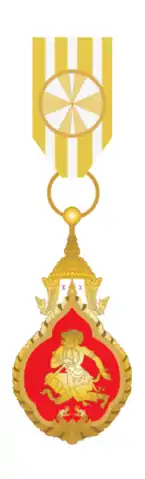 The Order of Civic Merit of the Kingdom of Laos (Lao: ອິສະຮິຍາພອນພົນລະເມືອງດິແຫ່ງຊາດ Itsariyaphon Phonlamuang Di Haeng Sat) was established on November 20, 1950 under Royal Ordinance No. 186[1] by H.M. Sisavang Phoulivong, The King of Laos. It is an Order of Civic Merit for civil officials and military officers. It was awarded for meritorious and courageous service to the State in three classes (1. Commander, 2. Officer, and 3. Knight).[2] Until 1975 the approval authority was the Prime Minister[3] of the Royal Lao Government. The current approval authority is H.E. Professor Maha Khamphoui Sisavatdy,[4] Prime Minister of the Royal Lao Government in Exile as an elected successor to the Office of the Prime Minister of the Royal Lao Government.