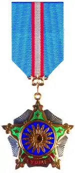 The Order of Kurmet (Kazakh: Құрмет ордені, Qurmet ordeni) or the Order of Honour is an order awarded by the government of Kazakhstan since 1993. It is awarded to citizens of Kazakhstan who have exhibited merit in the fields of economics, science, culture, social issues, and education. The order has no grades or classes.[2]