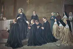 The order originated with the priest John Eudes, who attempted to find homes for prostitutes under the care of Catholic women. One of these women, Madeleine Lamy persuaded Eudes that more was needed. Three Visitation nuns came to his aid temporarily, and, in 1641, a house was opened at Caen under the title of Refuge of Our Lady of Charity.[2] Other women joined them, and, in 1651, the Bishop of Bayeux gave the institute his approbation. In 1664 a bull of approbation was obtained from Pope Alexander VII. That same year a house was opened at Rennes, and the institute began to spread. When the French Revolution broke out there were seven communities of the order in France.[3]