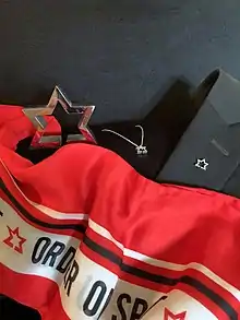 The recipients of the Order of Sport are recognized with the Order of Sport typographic scarf, a trophy, pin or pendant.[5]