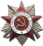 The Order of the Patriotic War (Russian: Орден Отечественной войны, romanized: Orden Otechestvennoy voiny) is a Soviet military decoration that was awarded to all soldiers in the Soviet armed forces, security troops, and to partisans for heroic deeds during the German-Soviet War, known since the mid-1960s in the former Soviet Union as the Great Patriotic War.