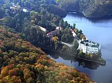 Nowadays, the castle once again belongs to the Schwarzenbergs. It is open to the public. Next to the castle is a castle park. Of the park's original area of 180 ha, 140 ha (350 acres) have been preserved, the rest was flooded during the construction of the reservoir in the 1960s. In the castle park there is the Schwarzenberg family tomb from the mid-19th century.[2]