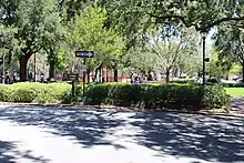 In the center of the square, the German Memorial Fountain honors early German immigrants to Savannah.[2] Installed in 1989, it commemorates the 250th anniversary of Georgia and of Savannah, as well as the 300th anniversary of the arrival in Philadelphia of thirteen Rhenish families.[3]