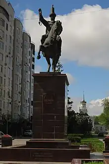 After causing this confusion, Ormon encircled and attacked Kenesary's army at Maitobe.[12] Early in the battle, a large number of Kazakhs were dispersed by Ormon's trumpeters, and Jantay killed the Kazakh prince Seren with a lance.[13] After this, two Kazakh sultans, Rustem Aspandiaruly and Sypatai, betrayed Kenesary and fled from field, taking a large portion of the army with them. The remaining Kazakh forces retreated to a quagmire near Mykan. The Kazakh army was completely defeated at Mykan, and Kenesary was captured. 32 Kazakh sultans were killed in the battle.[11] Kenesary was executed at the Chukar Sengir Hill near the Kara-Suu River, and his head was sent to the Russian commander at Omsk and later to Emperor Nicholas I.[12] The Russians were grateful with the execution of Kenesary, and rewarded the Kyrgyz leaders, granting Ormon and Jantay with gold medals and gold-embroidered robes.[11] Ormon was also personally given a golden saber and was appointed a lieutenant colonel in the Imperial Russian Army.[6] On 22 August 1847, the Kyrgyz and Kazakhs officially signed a peace treaty at the Kazakh city of Taldykorgan.[11] Kenesary was the last Kazakh khan, and after his defeat, Kazakhstan would be integrated into the Russian Empire.