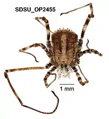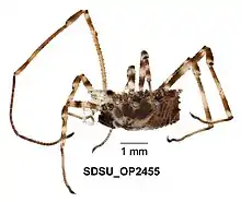 - ↑ Schönhofer, Axel L. (2013). "A taxonomic catalogue of the Dyspnoi Hansen and Sørensen, 1904 (Arachnida: Opiliones)". Zootaxa. 3679 (1): 1–68. doi:10.11646/zootaxa.3679.1.1. PMID 26146693.