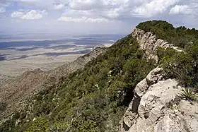 Oscura Mountains, originally known to the Spanish as the Sierra Oscura, are a ridge of mountains, trending north and south, east of the Jornada del Muerto and west of the Tularosa Valley. The word oscura means "dark" and refers to the dark color of the mountains due to the Pinyon-juniper vegetation at their higher elevations.[1] The Oscuras are located in Socorro County and Lincoln County, New Mexico.[2] Their southern end is at 33°30′30″N 106°18′45″W / 33.50833°N 106.31250°W / 33.50833; -106.31250 and their northern end is at 33°49′15″N 106°22′20″W / 33.82083°N 106.37222°W / 33.82083; -106.37222 near North Oscura Peak.[2] Their highest elevation is Oscura Peak at 8,625 feet (2,629 meters).[3]
