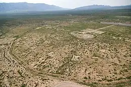 The Trinity test site with the Oscura Mountains at top left and the Little Burro Mountains at top right.