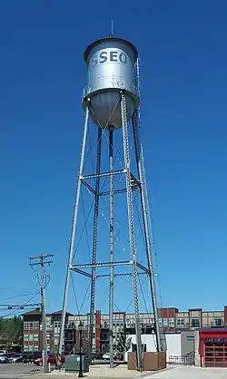 The Osseo Water Tower in Osseo, Minnesota, is an historic water tower listed in the National Register of Historic Places in June 5, 2017. It was listed for its historical significance to community planning and development in Osseo, because it promoted better fire fighting, provided fresh water to homes and businesses, and supported the growth of the community. It is also architecturally significant because hemispherical-bottom water towers, built from about the 1890s to about 1940, are rapidly being replaced by larger-capacity towers.[2]: 11