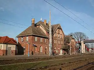 Osterburg (German: Bahnhof Osterburg) is a railway station[3] in the town of Osterburg, Saxony-Anhalt, Germany. The station lies on the Magdeburg-Wittenberge railway and the train services are operated by Deutsche Bahn.