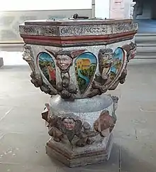 Ostheim with its fortress church and the surrounding region lay in a territorially fragmented area with frequent changes of ownership. From 1409 they belonged to the Electorate of Mainz, from 1423 to 1433 to the Prince-Bishopric of Würzburg.[5] In 1433 the House of Henneberg-Römhild took over the Ostheim area, and from 1548 the House of Mansfeld.[5] From 1555 the Duchy of Saxony ruled there, and from 1741 the Dukes of Saxe-Weimar-Eisenach.[5] In 1920 Ostheim became part of the state of Thuringia, and in 1945 it became part of Bavaria.[5] Since 1410 it has been ecclesiastically independent and received the town privileges in 1596. The nobility could retreat to Lichtenburg, two kilometers to the north, in case of warlike conflicts. The urban population in other places found protection behind a city wall, while the inhabitants of Ostheim faced the dangers of war without protection. The Ostheimers therefore protected themselves by strengthening and extending the church.[6] The construction of the fortress church took place without the support of ecclesiastical or secular lords,[7] and its later upkeep was also undertaken exclusively by the Ostheim citizens and peasants.[8]