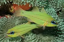 Ostorhinchus sealei, Seale's cardinalfish or the cheek-barred cardinalfish, is a species of ray-finned fish, a cardinalfish, from the family Apogonidae. It is an Indo-Pacific species which ranges from Malaysia east to the Solomon Islands, north to southern Japan and south to northwestern Australia, as well as Palau in Micronesia.[2] It is an uncommon species which occurs among branching corals in the sheltered lagoons protected by reefs. It can be found in small to large aggregations low in the water over the reef. It is infrequent below depths of 10 metres (33 ft). They are mouthbrooders which form pairs to mate.[2] During the day these fish shelter in the reef and they emerge at night to feed on zooplankton and benthic invertebrates.[1] The specific name honours the American ichthyologist Alvin Seale (1871-1958).[3]