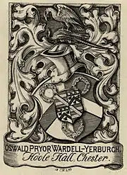 In 1889, at St George's, Hanover Square, Oswald Yerburgh married Edith Wardell Potts,[10] of Hoole Hall, heiress to a banking fortune, and combined their names the same year by assuming by Royal Licence the additional name of Wardell.[1] The Wardell-Yerburghs had three children, Hilda (1890–1941), Arthur (1891–1953), who became an officer of the Royal Navy, and Geoffrey Basset (1893–1944).[11] In 1938 Mrs Wardell-Yerburgh was living at Eastwood Manor, East Harptree.[12] She died on 22 July 1941, aged 82, three months after the death of her daughter Hilda,[13] who had choked to death on a fish-bone.[14] Both had been living at Littlewood House, Frampton, Dorset.[13]