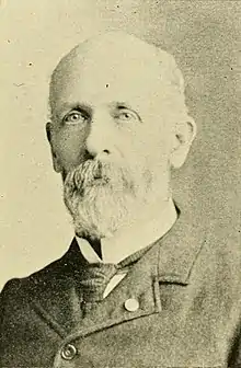 Otis Addison Merrill was born August 22, 1844, in Hudson, New Hampshire, to Benjamin Arnold Merrill and Mary Jane (Winn) Merrill. He was educated in the local schools. At the age of 18, during the American Civil War, he enlisted in the Union Army with the 7th New Hampshire Infantry Regiment. He was awarded a Gillmore Medal for his conduct during the Second Battle of Charleston Harbor. He was discharged July 7, 1865, at Concord with the rank of sergeant.[1] After the war he went to Haverhill, Massachusetts, where he learned the carpentry trade, moving to Lowell in 1869. After four more years and with some self-training in architecture, he established himself as an architect in Lowell in 1873.[2] In 1878 he formed a partnership with Charles S. Eaton, a Lowell native who had just graduated from the Massachusetts Institute of Technology. The partnership of Merrill & Eaton was dissolved in 1880.[3] Two years later in 1882 he formed a partnership with Arthur S. Cutler, an Andover native, who had joined Merrill's office as a draftsman in 1876.[2] Merrill & Cutler was dissolved in 1897, and Merrill formed a new partnership, Merrill & Clark, with draftsman Edwin R. Clark.[4] In April 1899 Clark left to open his own office, and Merrill was joined by Perley F. Gilbert, a native of St. Johnsbury, Vermont, and graduate of MIT. Merrill & Gilbert practiced together until Merrill's retirement in November 1900.[5] The office continued under Gilbert and his successors until 1990.