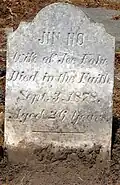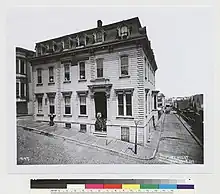 Due to his wife Eliza's failing health, Otis Gibson left China with her in 1865 and returned to Moira, New York as a pastor.[6] In 1868 he was assigned to San Francisco, California as superintendent of the Methodist Church's "Chinese Domestic Mission" designed to minister to the swelling number of Chinese immigrants in area of the California Conference.[7] There he learned the Cantonese dialect and opened many missions and churches, including San Francisco, Oakland, Stockton, Salinas, and in the gold fields in the foothills of California, and he also wrote a Chinese-English Dictionary and translated the New Testament into Cantonese.[1] Gibson and his wife had instituted on August 10, 1870 the Women's Missionary Society of the Pacific Coast, enlisting area Methodist women to organize the rescue and protection of exploited Chinese women of the slave trade.[7] By the end of 1870, Rev. Gibson had erected the building of the "Chinese Mission Institute" on Washington Street in San Francisco's Chinatown.[8] In October 1871, Gibson baptized his first convert in America, a young Chinese prostitute named Jin Ho.[1][9][10][11]