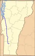 Otter Creek is the longest river entirely contained within the borders of Vermont.[2][3] Roughly 112 miles (180 km) long, it is the primary watercourse running through Rutland County and Addison County. The mouth of the river flows into Lake Champlain.