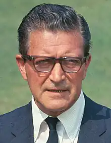 He defeated incumbent William G. Stratton by more than 500,000 votes in the 1960 Illinois gubernatorial election and was re-elected in 1964, defeating moderate Republican Charles H. Percy. As governor, Kerner promoted economic development, education, mental health services, and equal access to jobs and housing. Some of his major economic developments were when he won the contract to build the Fermi National Accelerator Laboratory.[6] In 1965 Kerner submitted an article called "Illinois Opens the Export Doors" in which he explained his goal to initiate the full employment granted by export trade citing a potential 250.000 workers that could be put to work.[7] The primary goal was job creation, which to him was achieved through the improvement of trade. As a result, Kerner funded an Illinois Committee for Trade Expansion. His first mission to Europe in 1963 saw an additional $5 million generated for Illinoisan agriculturists. At that time Japan was the state's largest trading partner, with $145 million of annual trade.[7] Kerner saw Japan as a valuable asset and thus funded the Illinois Far Eastern Movement which included many corporate delegates. Relations with Japan remained good; the Japanese Prime Minister Eisaku Sato, who had been previously invited by Kerner in 1965, gave an impressive speech in 1967 praising the state of Illinois for its continued trade with Japan.[7]