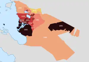 The municipality was established in 1865 due to the administrative reform which separated parishes and municipalities. Its initial name was Oulun maalaiskunta, but it was renamed Oulujoki after the Oulu River in 1910. The municipality consisted of two disconnected parts separated by the municipality of Muhos. The municipal administration was located in Oulunsuun pirtti in the town of Oulu itself until 1941, when it was moved to central Oulu. Oulujoki never had an administrative seat in its own territory.[2]