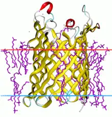 1. 1 2 Subbarao GV, van den Berg B (July 2006). "Crystal structure of the monomeric porin OmpG". J. Mol. Biol. 360 (4): 750–9. doi:10.1016/j.jmb.2006.05.045. PMID 16797588.